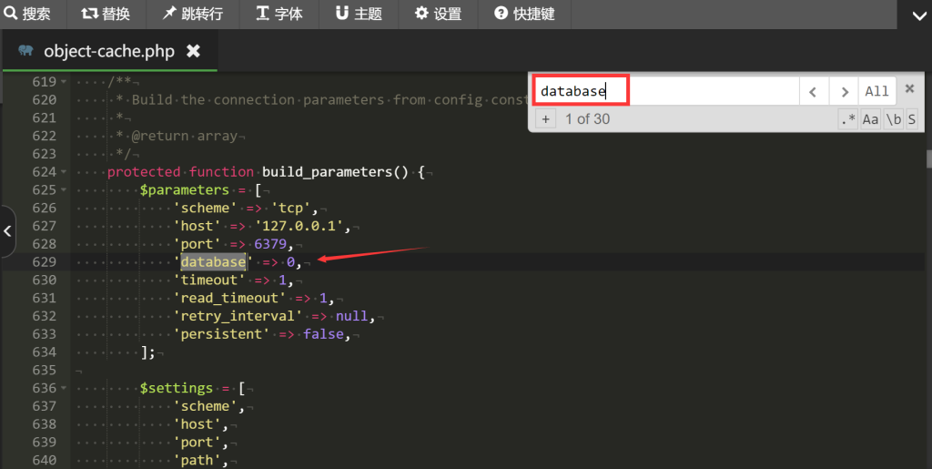 打开在网站根目录/wp-content/plugins/redis-cache/includes/里的object-cache.php文件搜索database 将后面的0改为1-15中其它空余的数据库名即可
